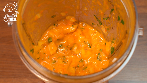 5. 엑스트라 버진 올리브유 8큰술, 레몬즙 8큰술, 올리고당 5큰술, 소금 약간, 후추 약간 넣고 곱게 간다