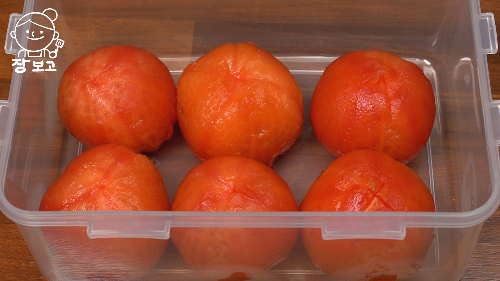 7. 껍질 벗긴 토마토에 부어주고 냉장고 하루 숙성한다