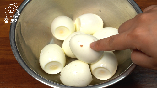6. 6분 30초간 삶은 계란은 바로 찬물로 옮겨서 식힌 뒤 껍질을 벗긴다