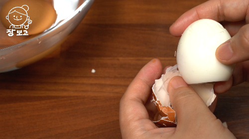 6. 6분 30초간 삶은 계란은 바로 찬물로 옮겨서 식힌 뒤 껍질을 벗긴다