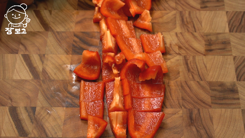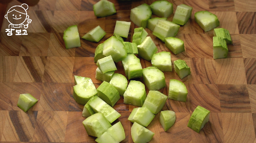 2. 오이와 셀러리, 씨를 제거한 파프리카도 깍둑 썬다