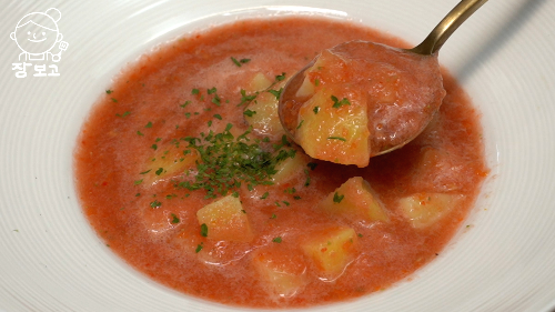 따뜻해서 바로 먹기 좋은 감자토마토수프 완성