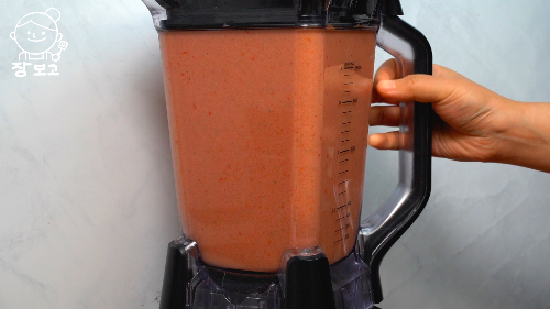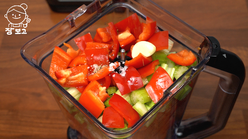 3. 믹서기에 모두 넣고 마늘 한쪽, 소금 약간, 후추 약간 넣고 곱게 간다