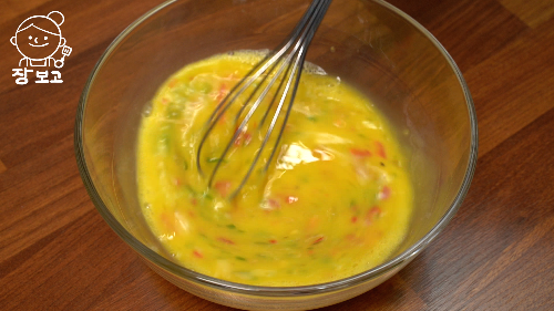 3. 여기에 계란 3개, 소금 약간, 후추 약간, 맛술 1큰술 넣고 덩어리 없게 잘 풀어준다