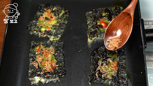 재래김, 청양고추, 홍고추, 밥새우, 계란, 맛술, 올리브오일, 사각팬