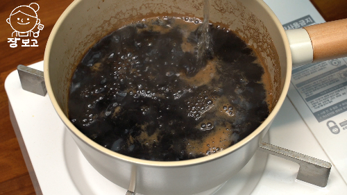 6. 냄비에 물 250ml, 진간장 150ml, 미림 3큰술, 매실청 5큰술 넣고 강불로 끓인다. 장물이 바글 끓으면 불 끄고 식초 120ml 넣고 섞는다