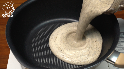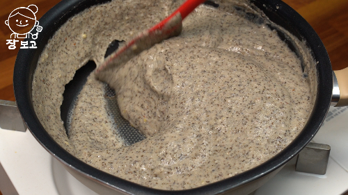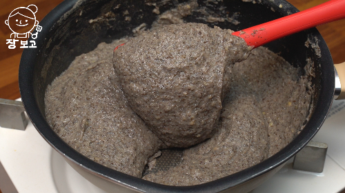 7. 10분 이상되면 걸쭉해진다. 반죽을 들었을 때 주걱에서 무겁게 떨어지는 농도가 되면 불을 끈다