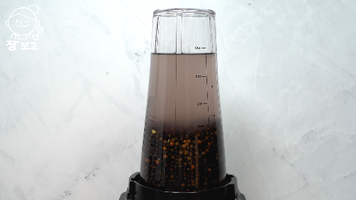 3. 믹서기에 불린 렌틸콩만 건져 넣고, 총 필요한 물 양 550ml에서 갈릴만큼 물을 넣는다. 짭짤한게 좋으면 소금 1/2큰술, 담백하게 먹고 싶다면 소금 1/3큰술 넣는다.