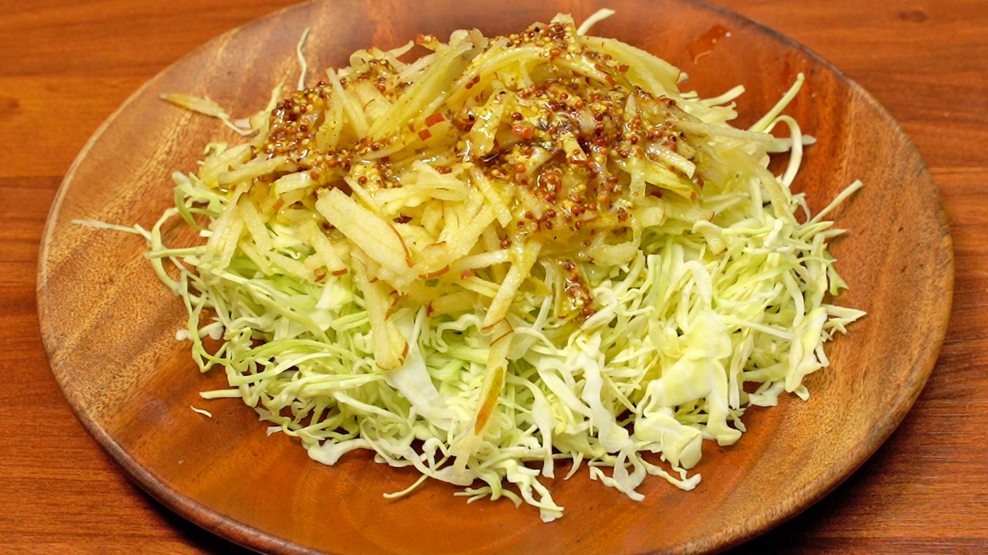 양배추, 사과, 레몬즙, 엑스트라버진 올리브오일, 홀그레인 머스터드, 통후추, 반숙란,