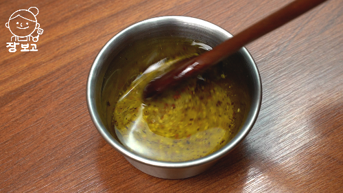 3. 레몬즙 1큰술, 엑스트라 버진 올리브오일 2큰술, 홀그레인 머스터드 1/2큰술, 후추 약간 넣고 섞는다