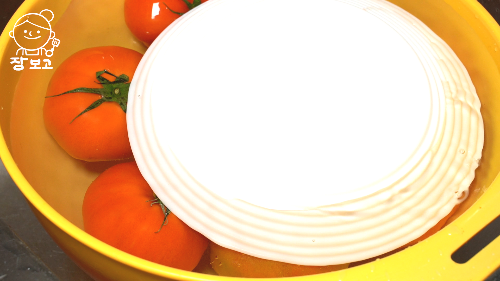 2. 토마토가 잠길 정도의 물을 붓고 식초를 약간 넣어 10분간 담가둔다 (물 1L 기준 식초 1큰술)