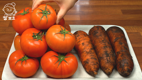 1. 토마토 3kg, 흙당근 1kg 준비. 새콤한 맛이 좋다면 토마토를 더하고, 단맛이 좋다면 흙당근을 더한다.
