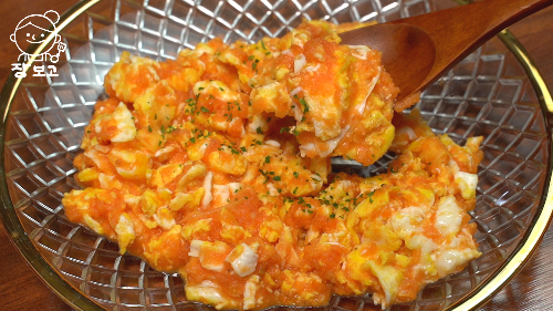 3. 토마토 달걀볶음을 만든다. 계란에 소금, 후추 넣고 스크램블 해주고 당근토마토캔닝과 굴소스 약간 넣어 섞어주면 완성
