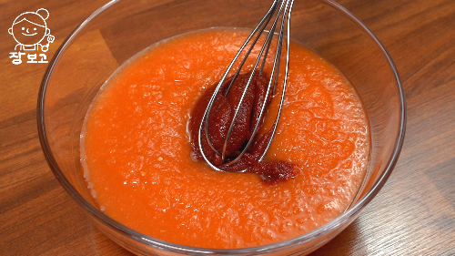 4. 토마토 당근에 고추장을 넣고 섞는다