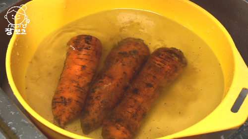 4. 토마토 헹군 물에 흙당근을 넣고 10분간 흙을 불린다