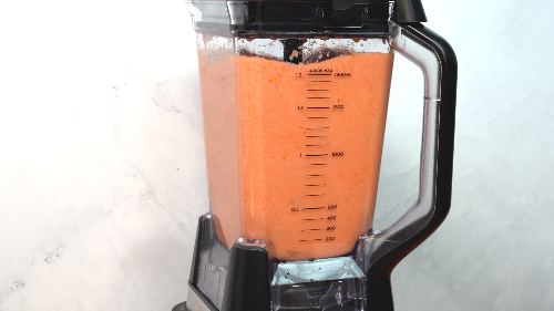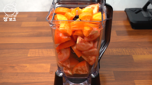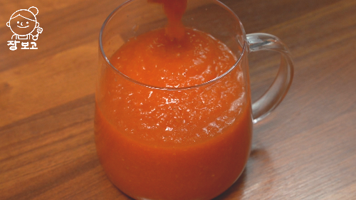 2. 믹서기에 토마토를 먼저 넣고 당근을 넣어 간다 (토마토를 아래에 넣으면 물을 넣지 않아도 잘 갈린다)
