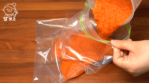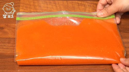 2. 열탕 소독이 번거롭고, 상온 장기보관이 불안하다면 토마토 당근을 다 식힌 뒤 지퍼백에 담아 냉동보관한다
