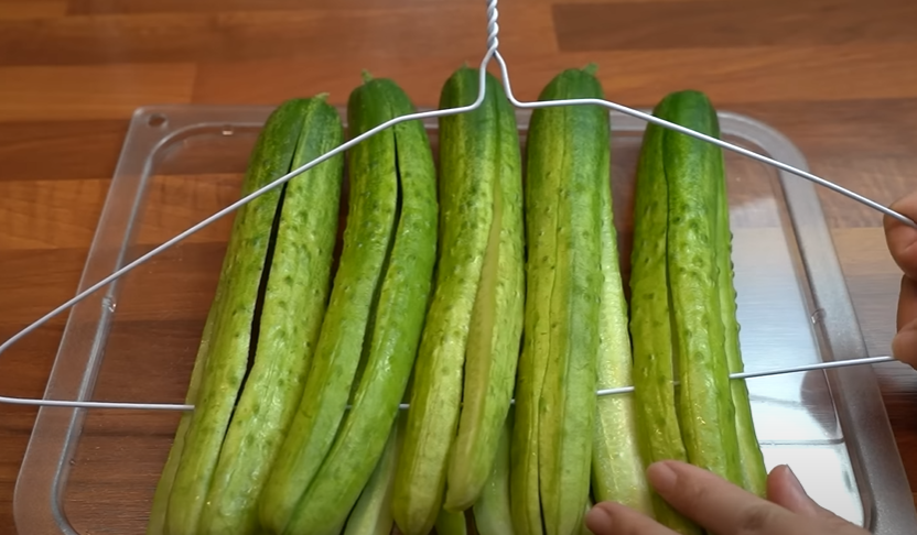 슬라이스 오이피클 만들기 재료 오이 5개 설탕 3큰술 매실청 2큰술 식초 8큰술 소금 1큰술 제로사이다 250ml 1. 세척한 오이는 양쪽 끝을 자르고 이등분한다. 2. 오이 끝에 포크를 꽂아 감자칼로 슬