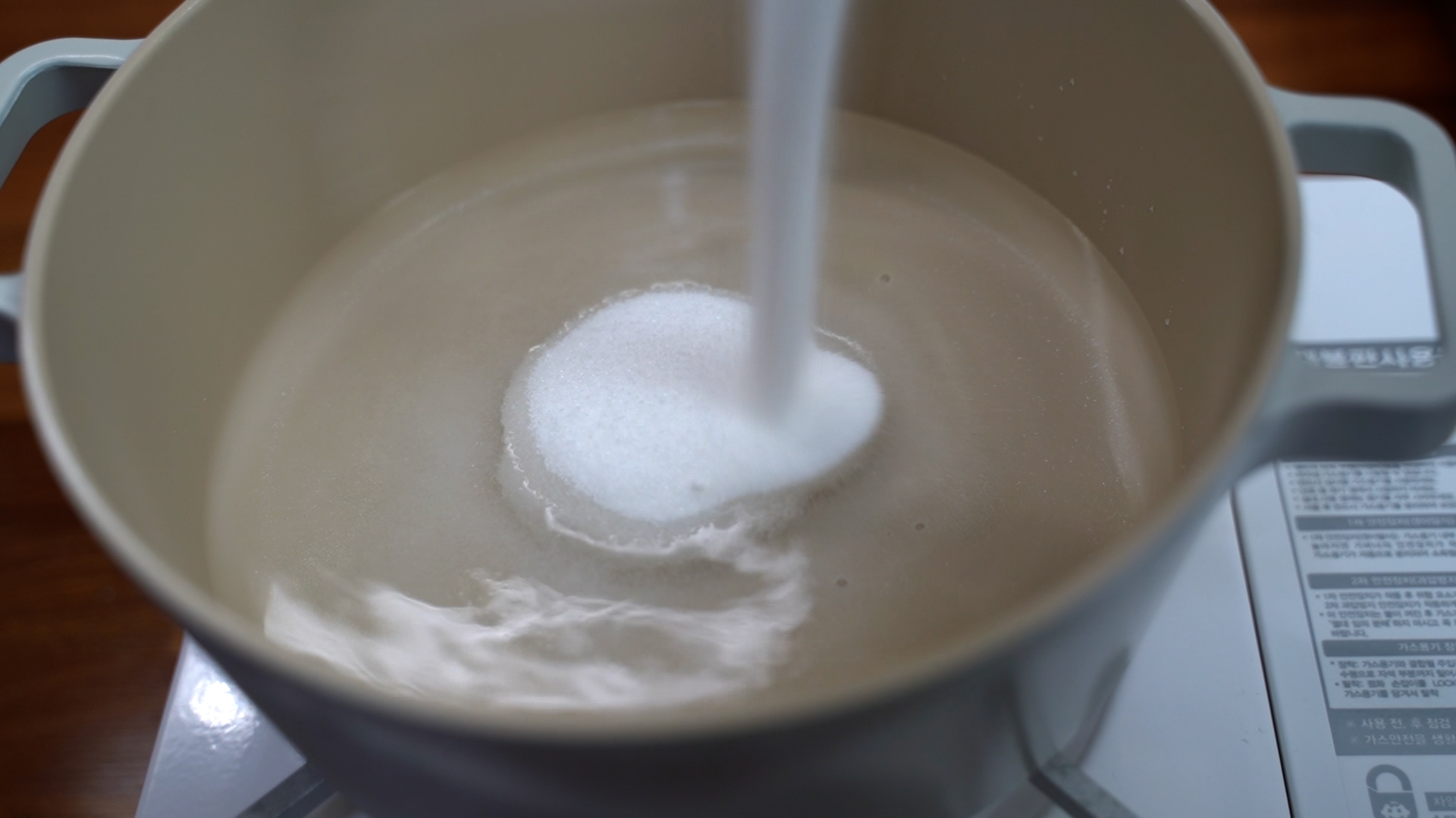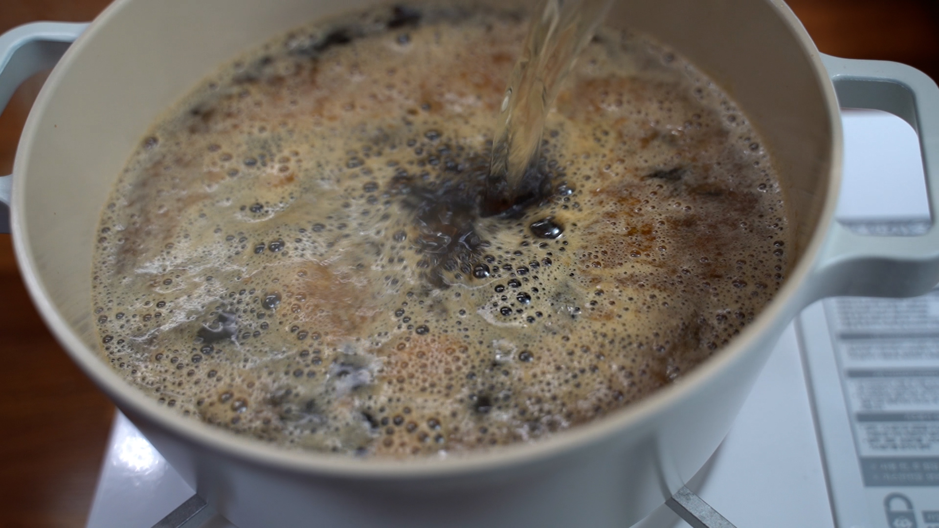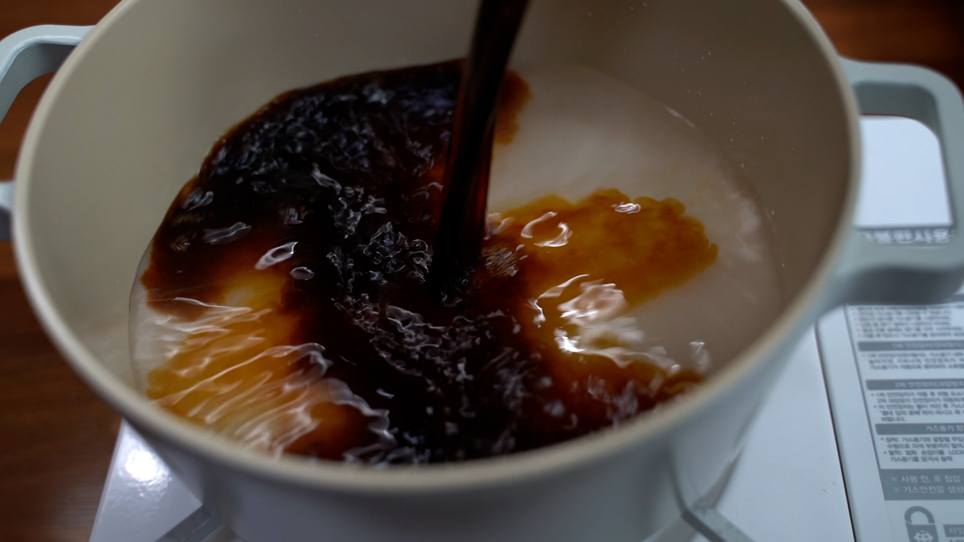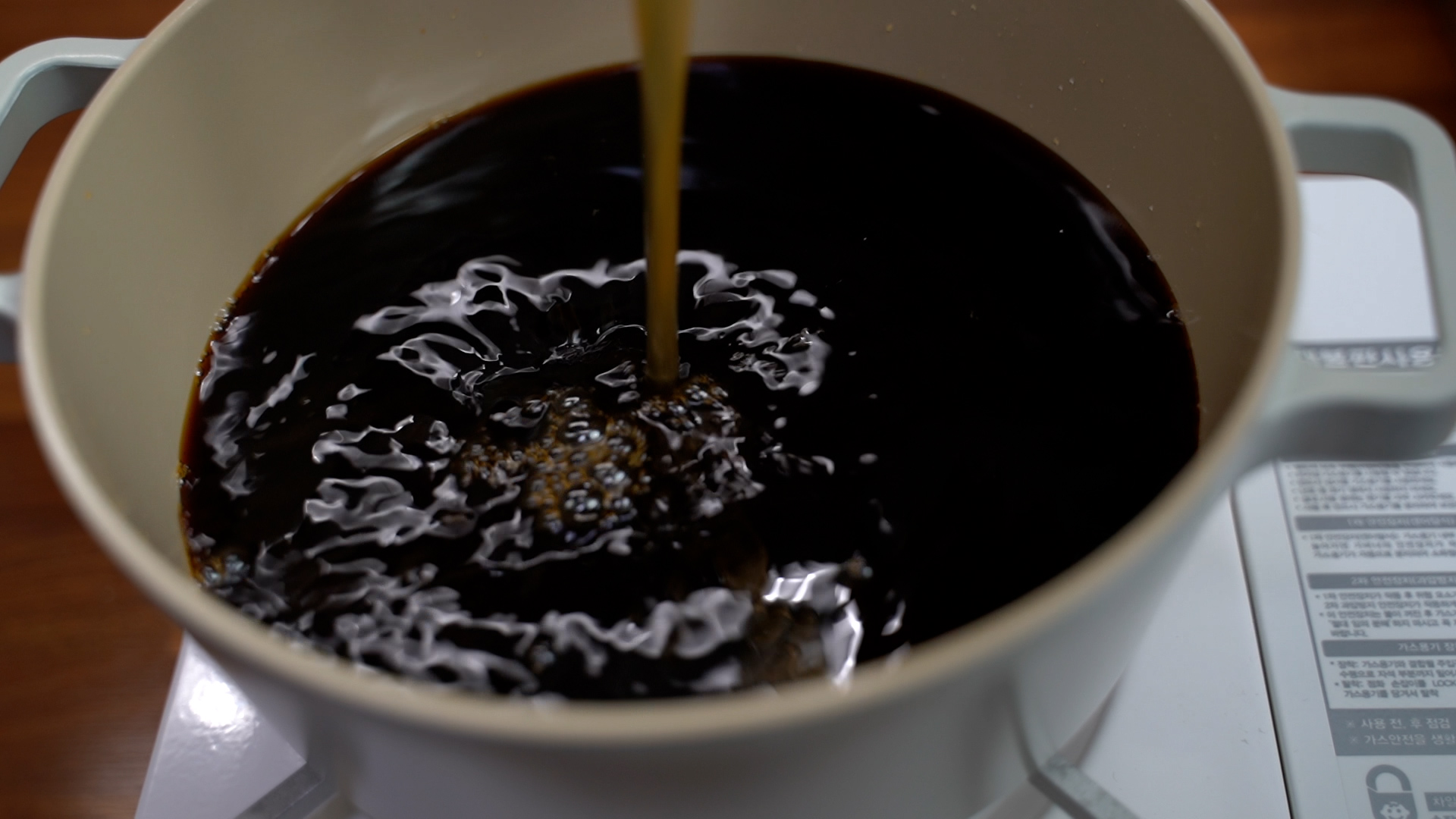 3. 냄비에 물, 설탕, 진간장, 매실액을 넣고 바글바글 끓인다