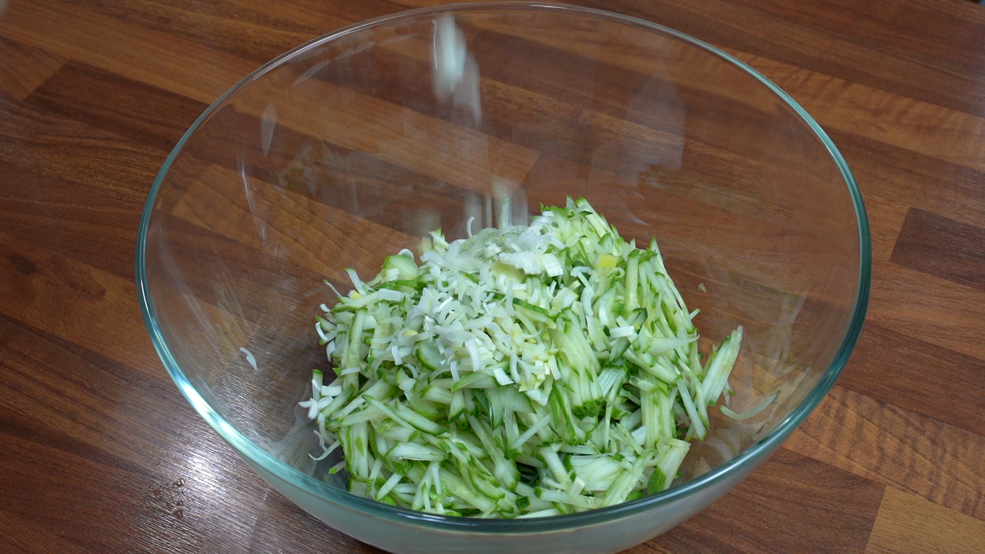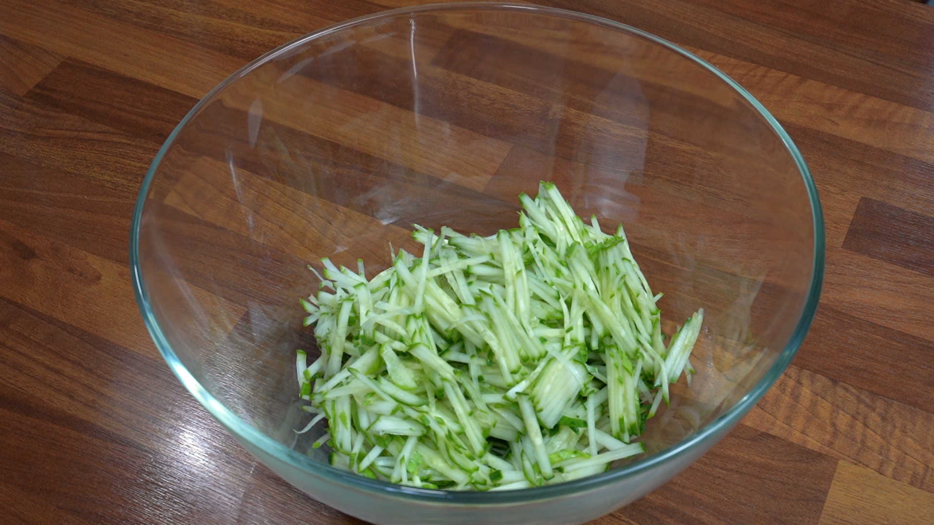 4. 오이를 얇게 채 썬다.
