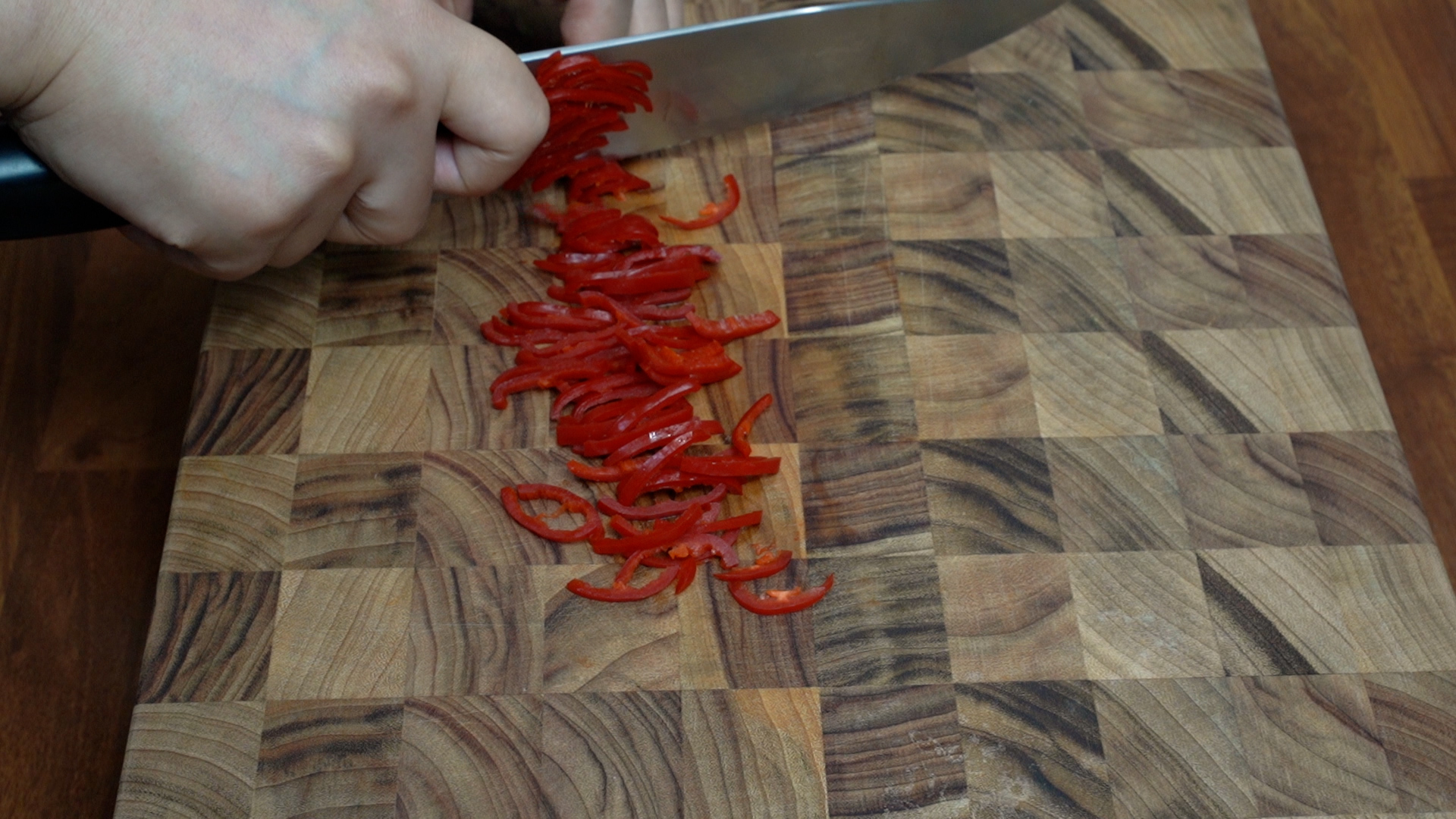 6. 홍고추는 씨를 빼고 썰고 청양고추는 다진다.