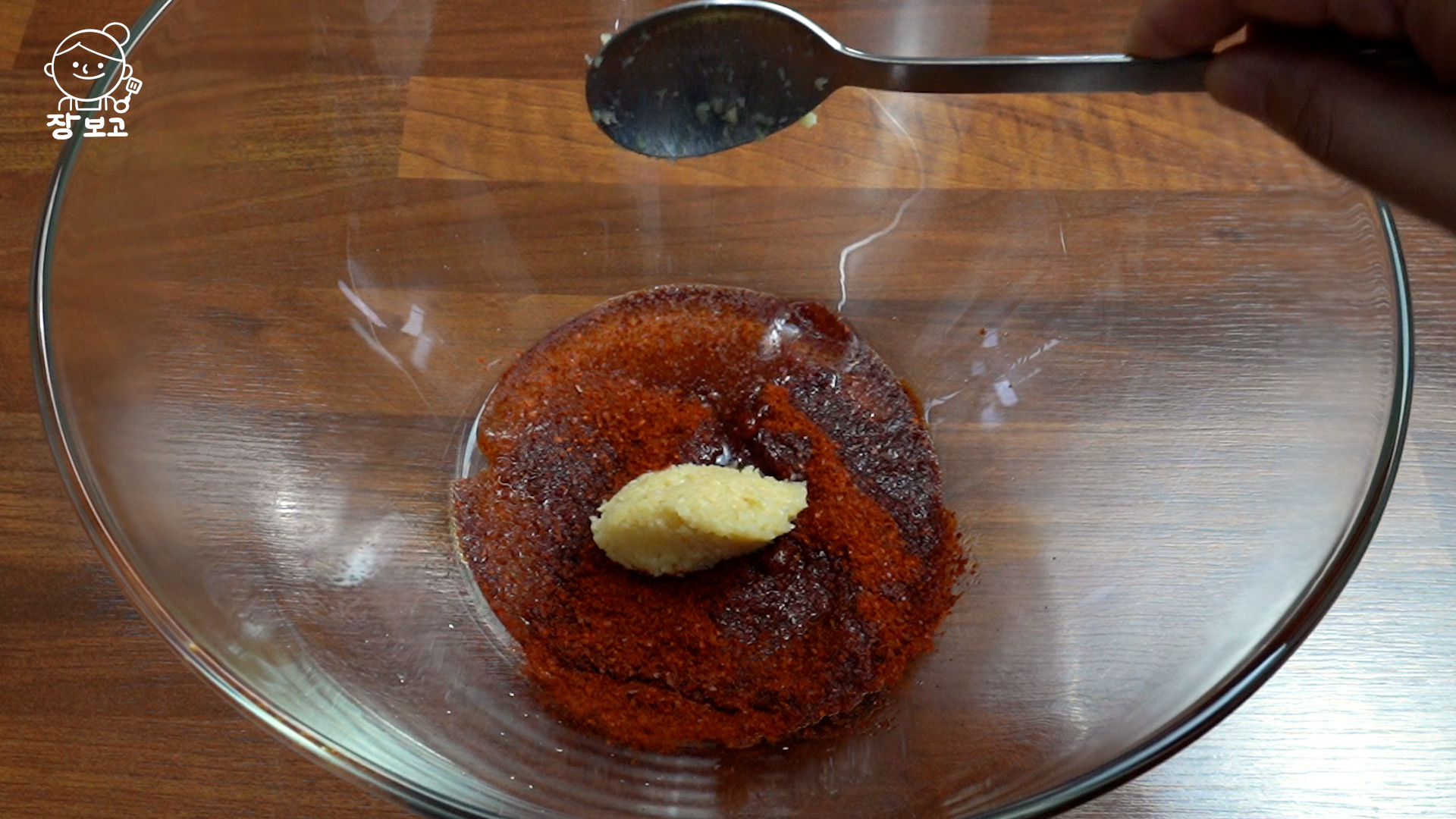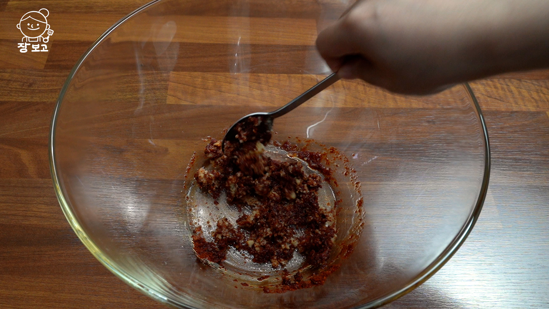5. 양념장 - 양조간장 / 2 큰술, 고춧가루 / 3 큰 술, 매실액 / 2 큰 술, 액젓 / 2 큰 술, 다진 마늘 / 1 큰 술 넣고 잘 섞는다.