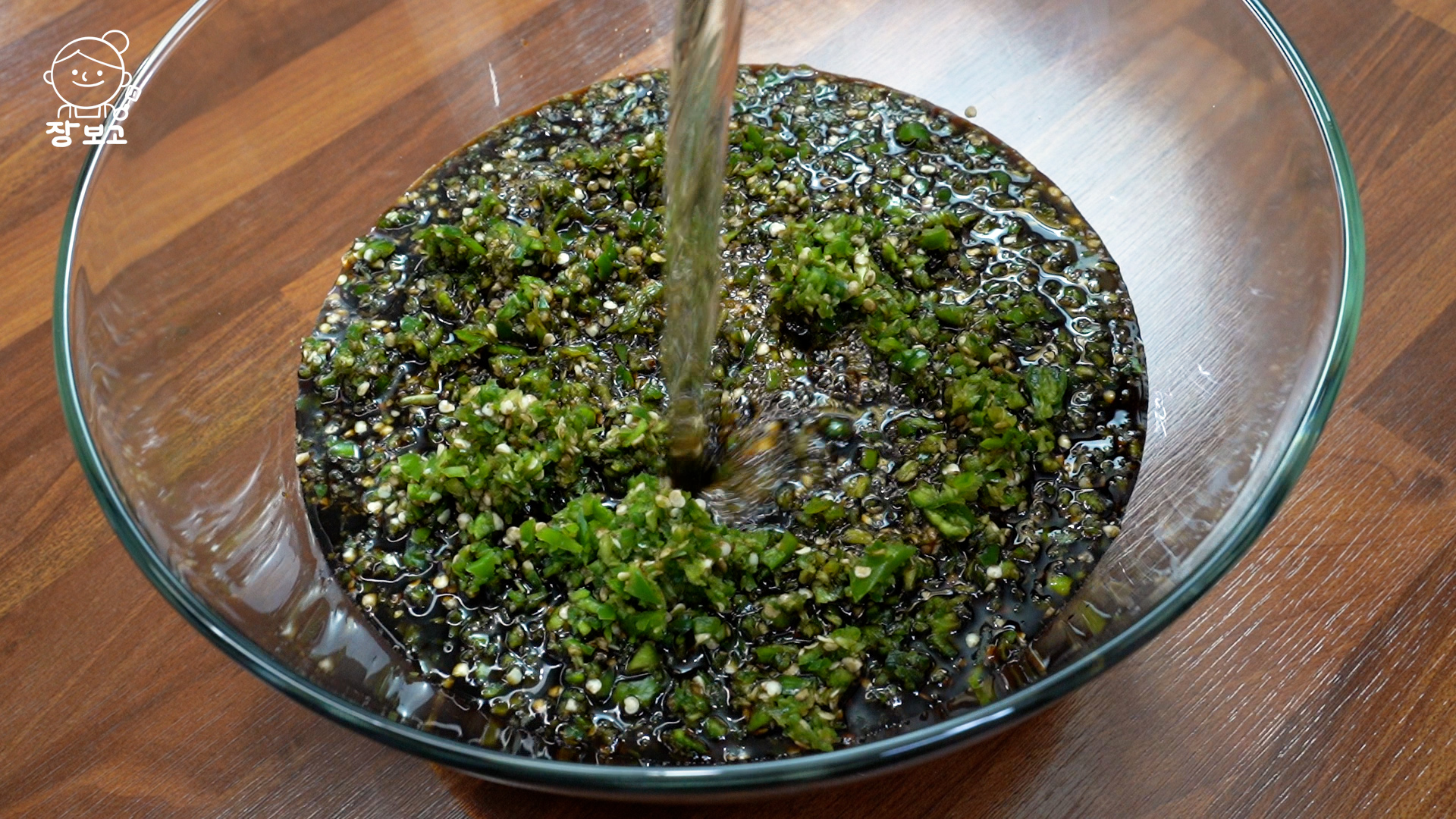 2. 다진 고추 700g에 진간장 4컵, 맛술 2컵을 섞어 소독한 유리병에 담아주면 고추짜박이 완성