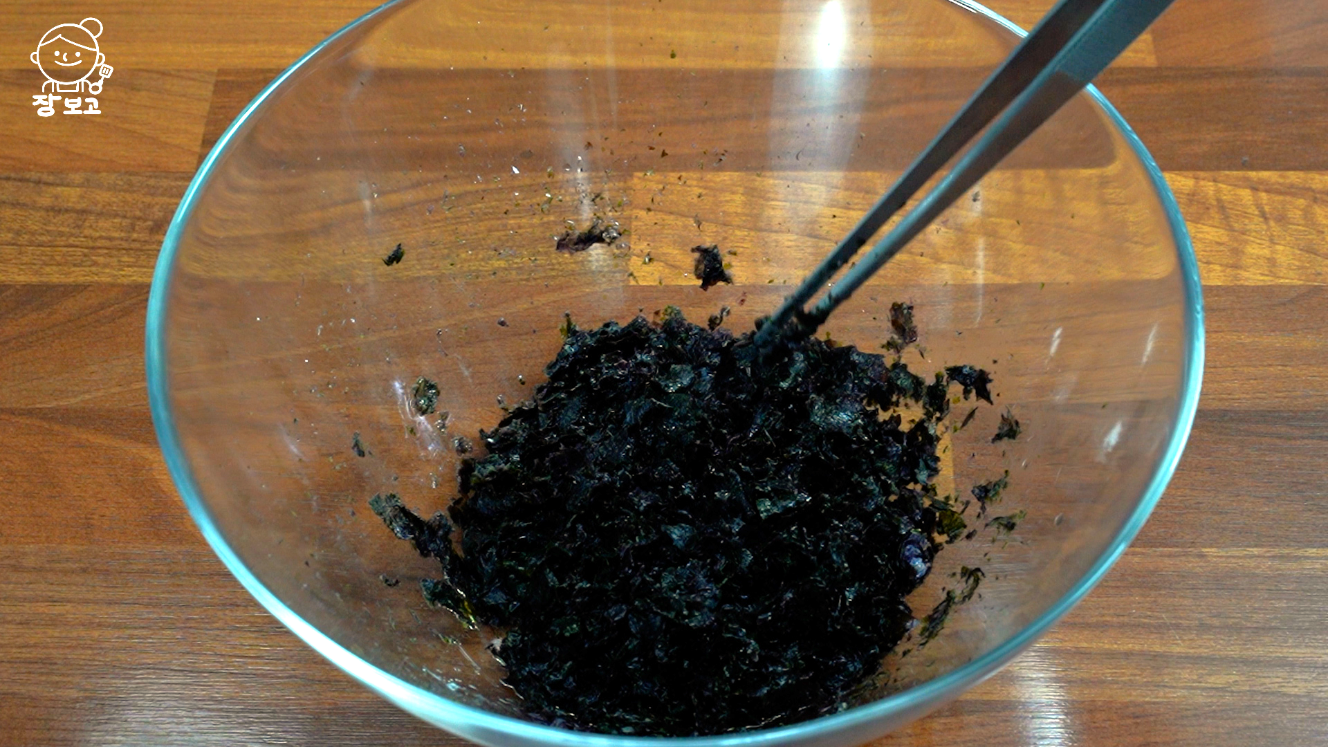 재래김, 감자전분, 참기름, 진간장, 고춧가루, 전자레인지용 유리볼