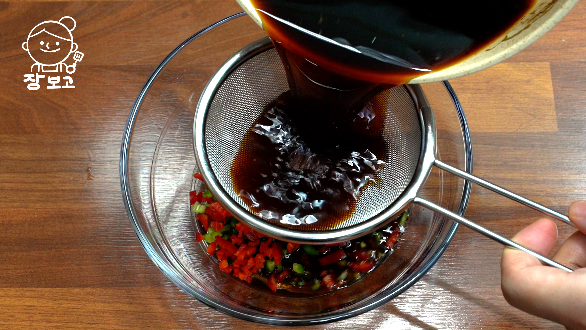 5. 채에 받쳐 간장을 볼에 붓는다