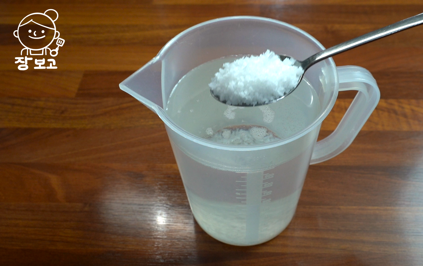 2. 설탕 1큰술 넣고 5분간 절인다. 물 1L와 천일염 3큰술을 저어 소금물을 만들고, 설탕에 절여진 무에 소금물을 부어 10분간 더 절인다. (여름무의 매운맛을 빼고 단맛과 간을 맞추는 작업)