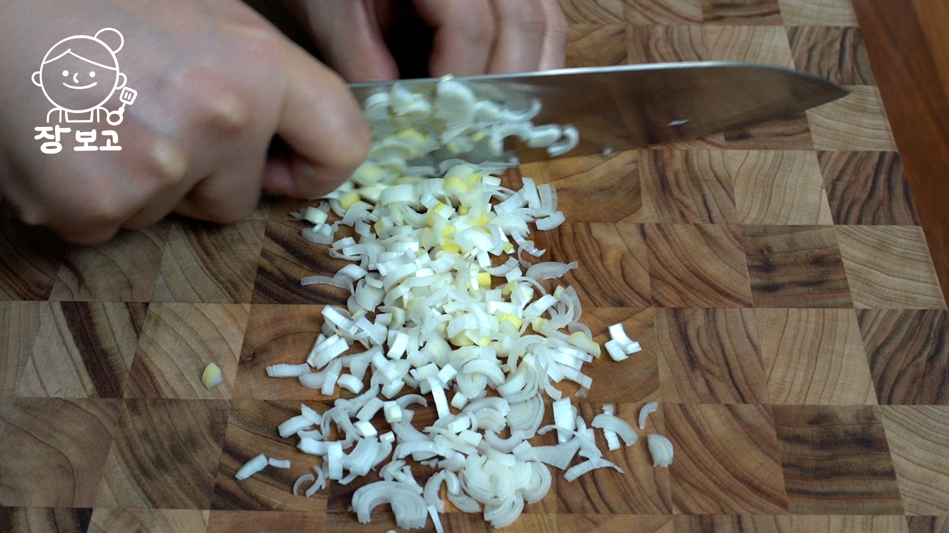 3. 대파 흰부분은 잘게 썰고, 마늘은 곱게 다지고, 고추는 씨를 빼고 잘게 다진다.