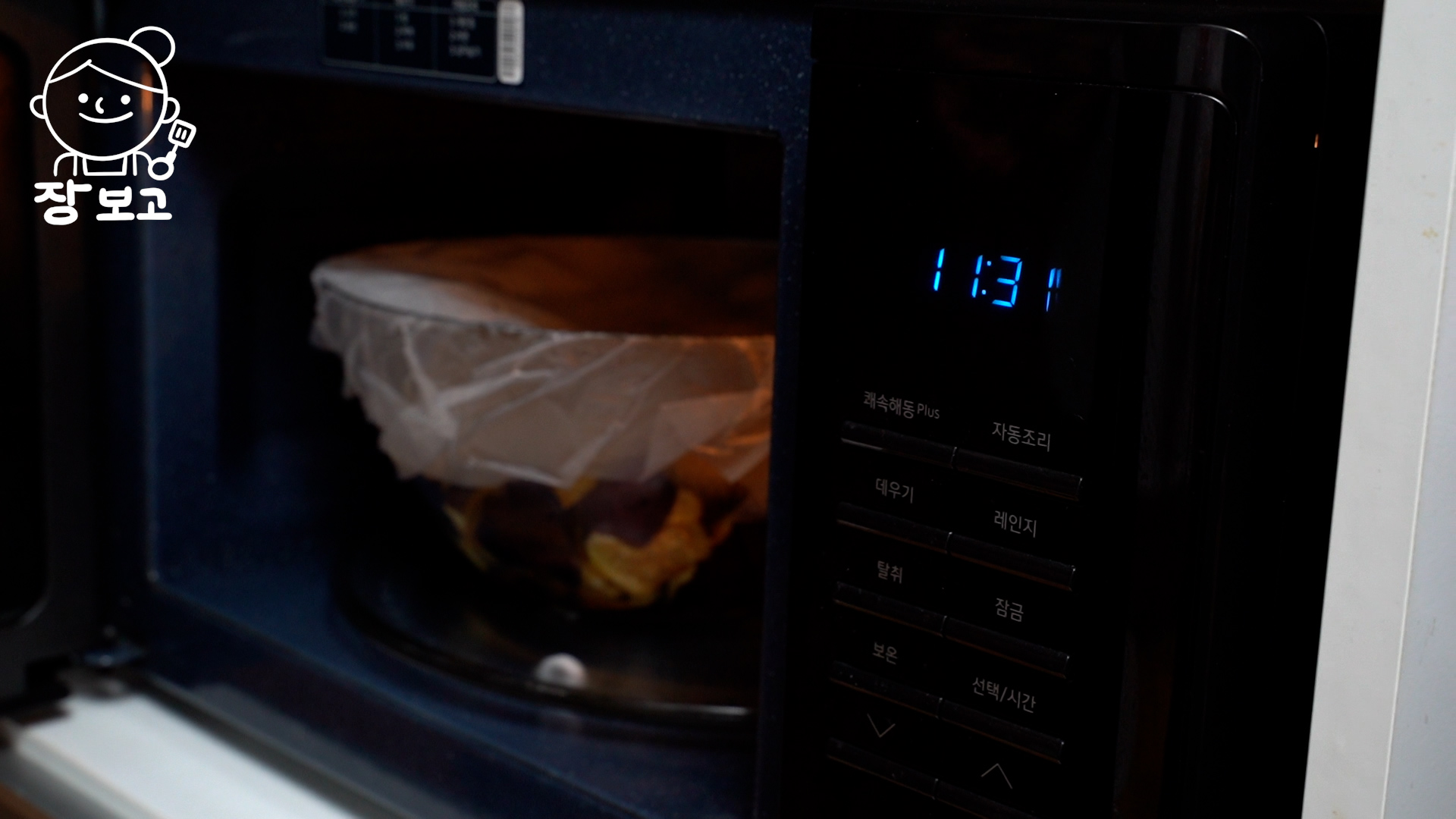 4. 전자레인지에 찐 가지를 넣고 30초간 볶다가 양념을 넣고 30초~1분간 버무리며 볶아주고 마지막에 통깨 뿌린다.