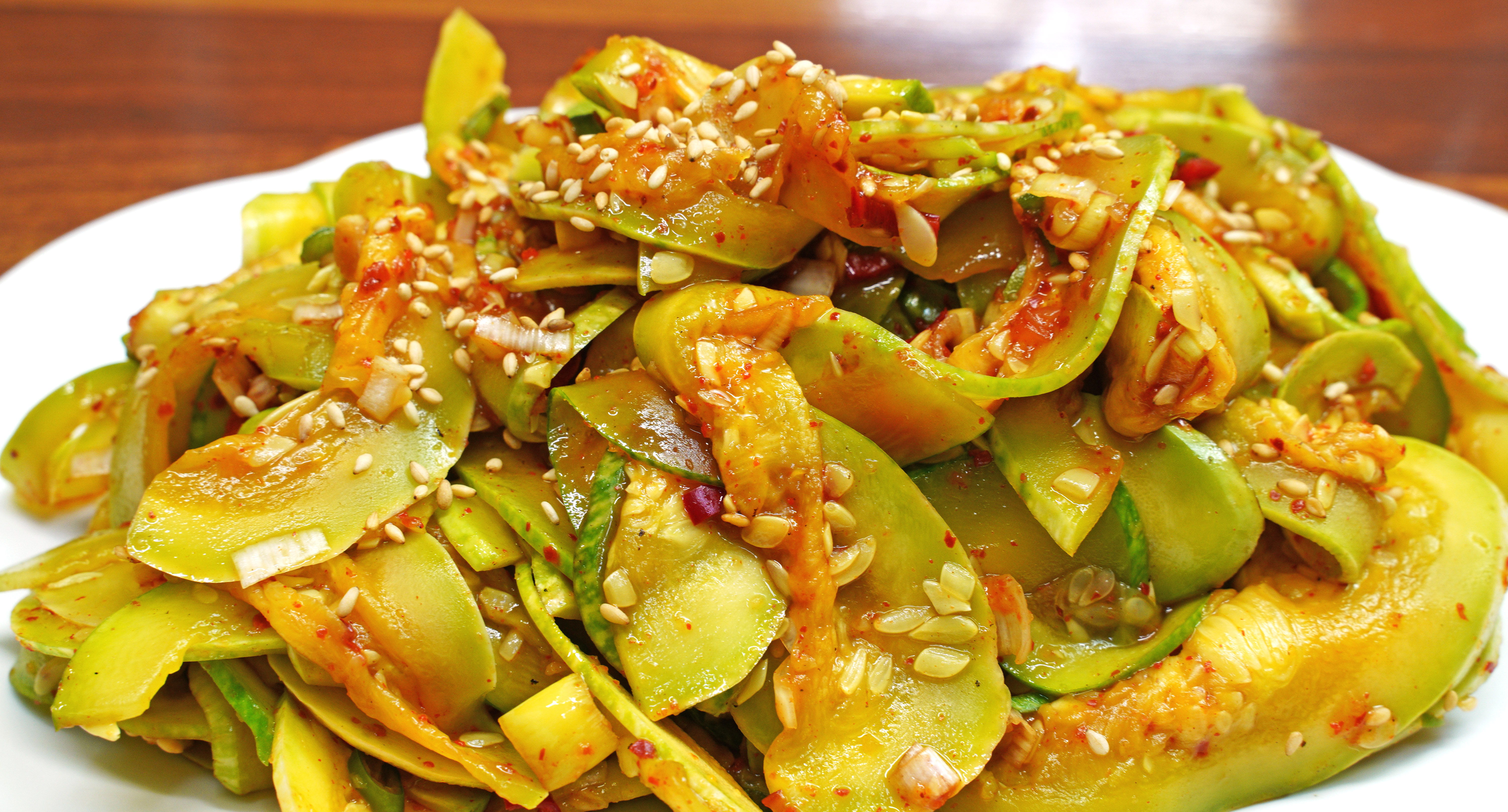 여름무는 수분이 많고 단맛이 적으며 매운맛이 있는 게 특징입니다. 이런 여름무로 생채를 그냥 담게 되면 니맛도 내 맛도 아닌 게 됩니다. 가을, 겨울에 나오는 무와는 다르기에 몇 가지 포인트