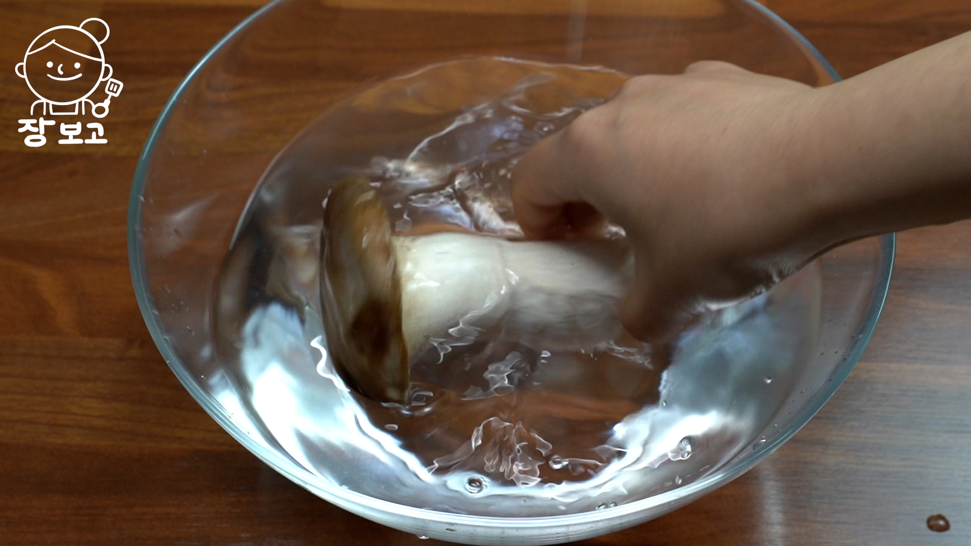 3. 버섯은 가볍게 헹궈서 키친타월로 물기 제거한다.