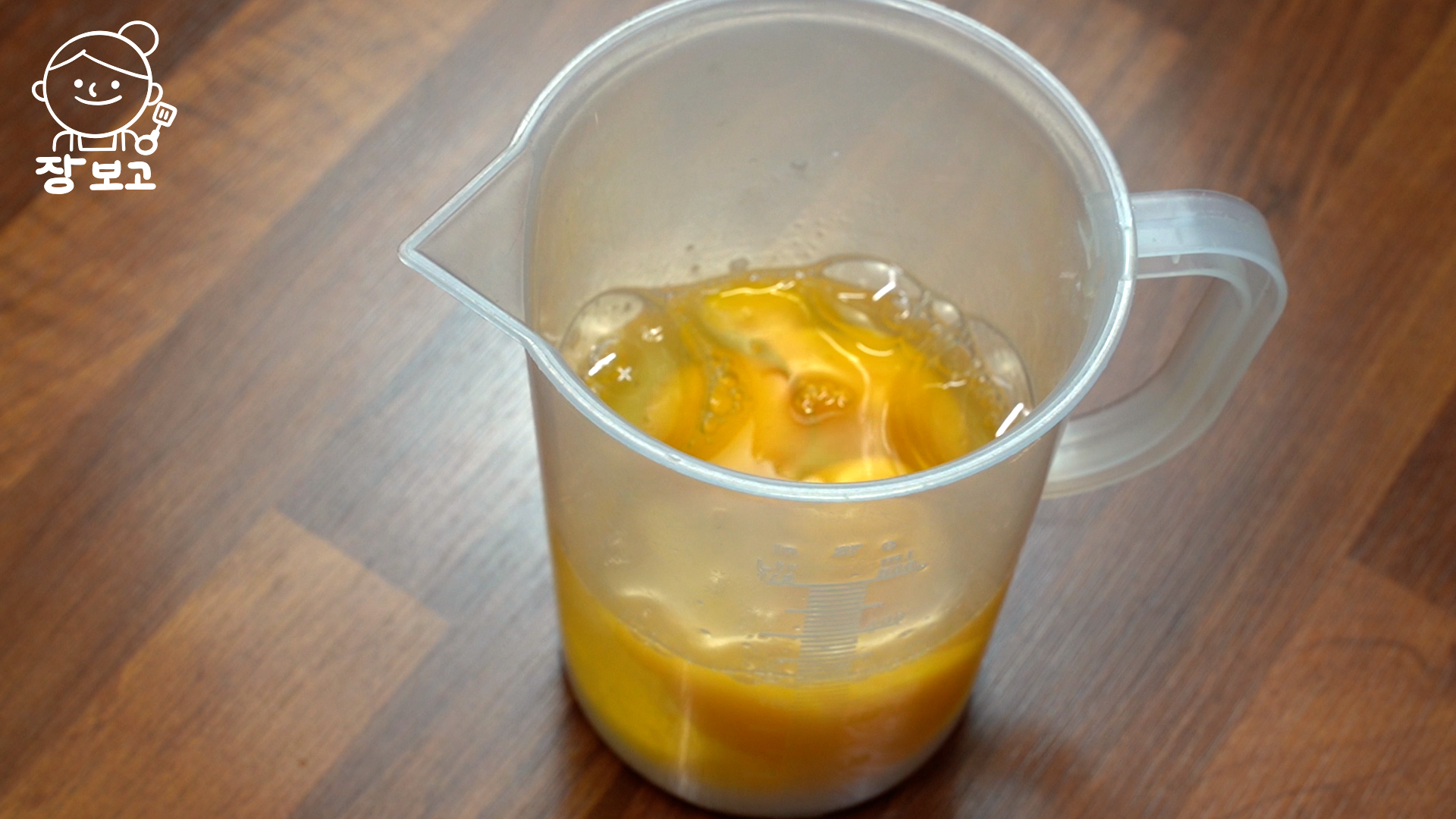 1. 감자전분에 물을 넣고 잘 섞어 전분물을 만든다. 전분물에 계란을 넣고 포크로 잘 풀어준다. 재료들이 간간하기에 소금간은 하지 않는다.