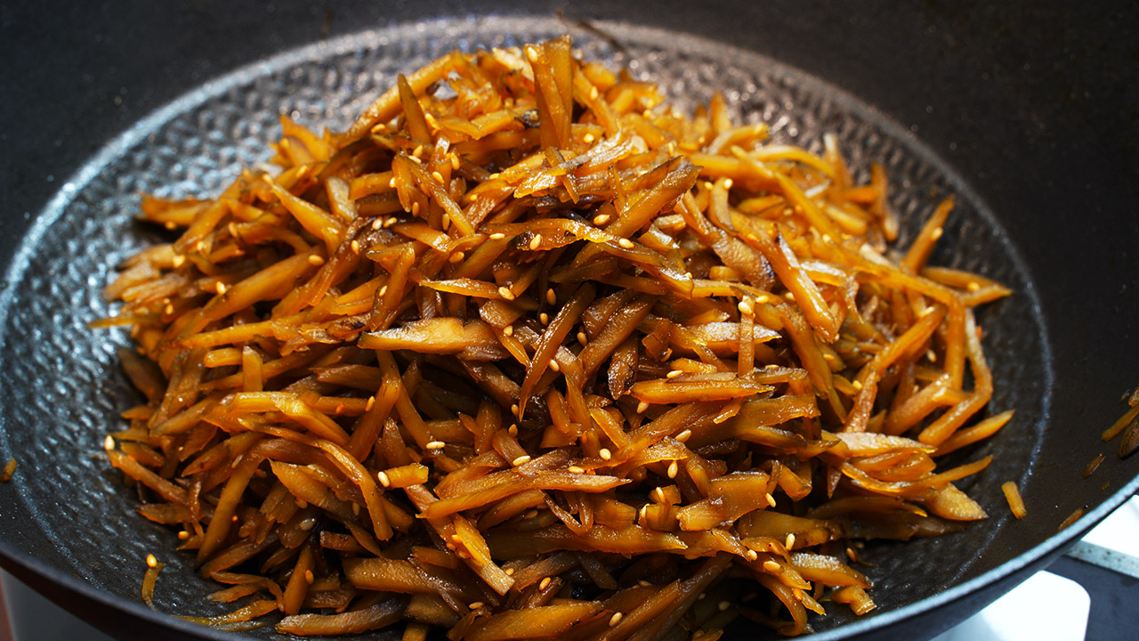 우엉, 원당, 식용유, 진간장, 물엿, 들기름, 통깨