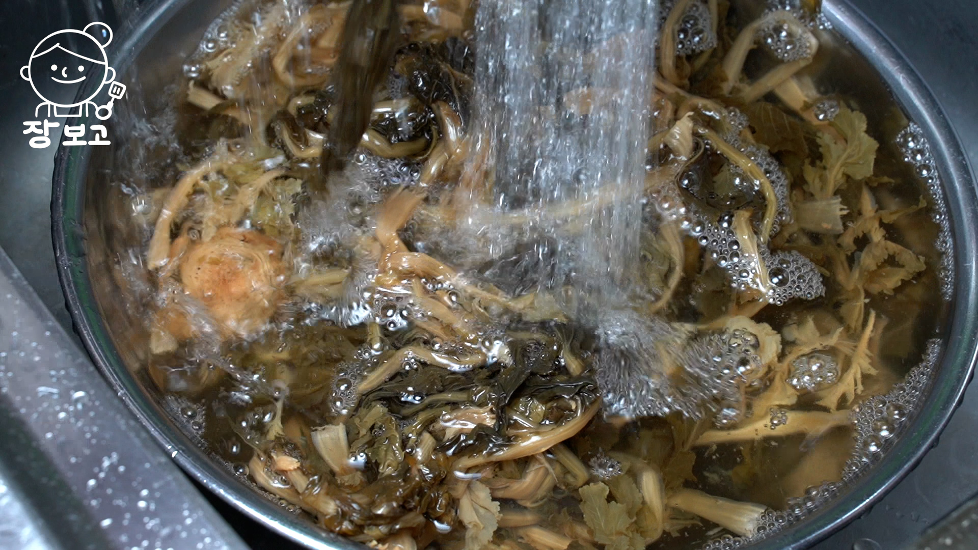 5. 2시간이 지난 시래기는 흐르는 물에 4~5번을 헹궈 깨끗한 물이 나올 때까지 헹군다.