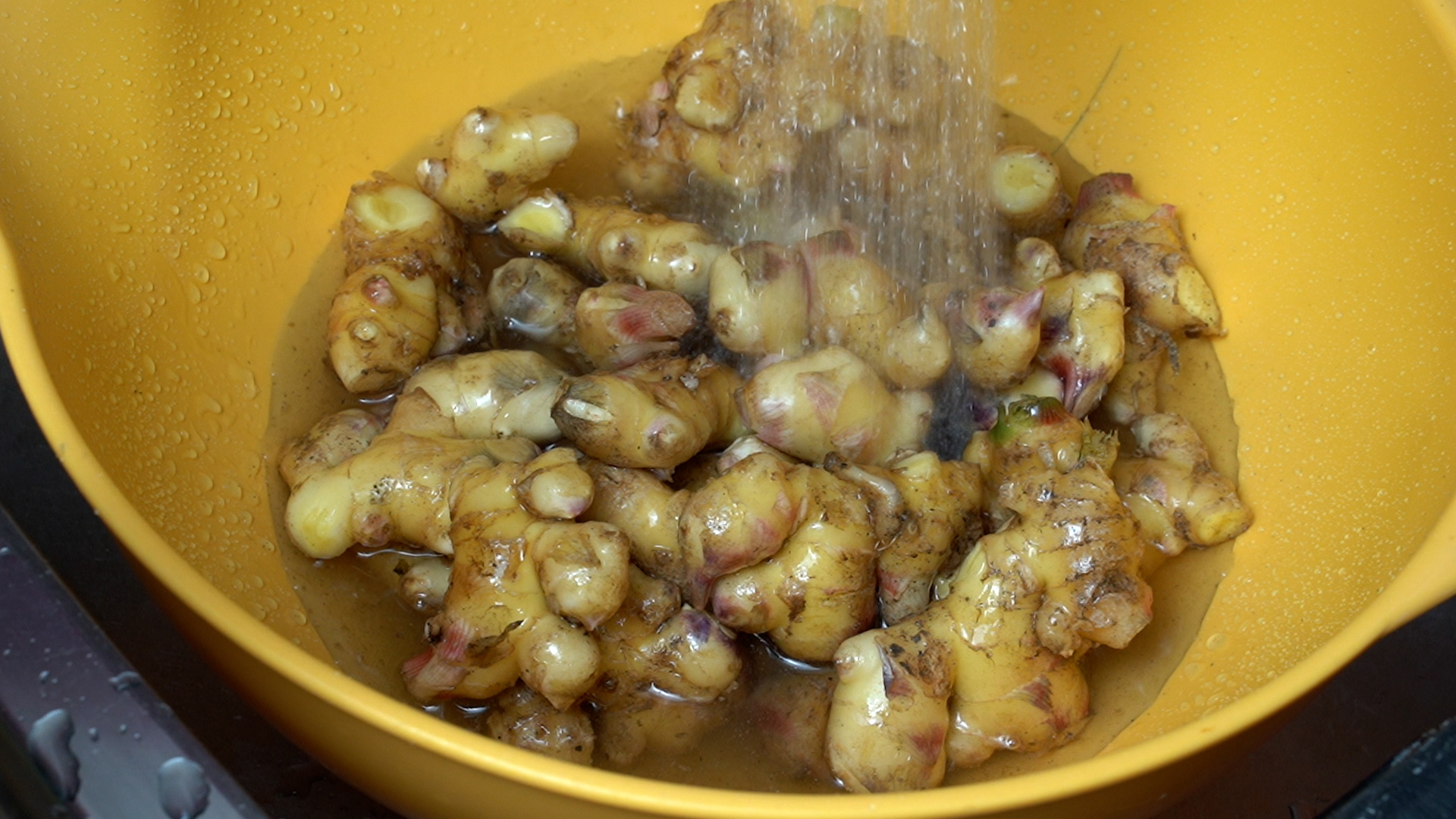 1. 생강은 흐르는 물에 흔들어 헹궈 흙을 제거한다.