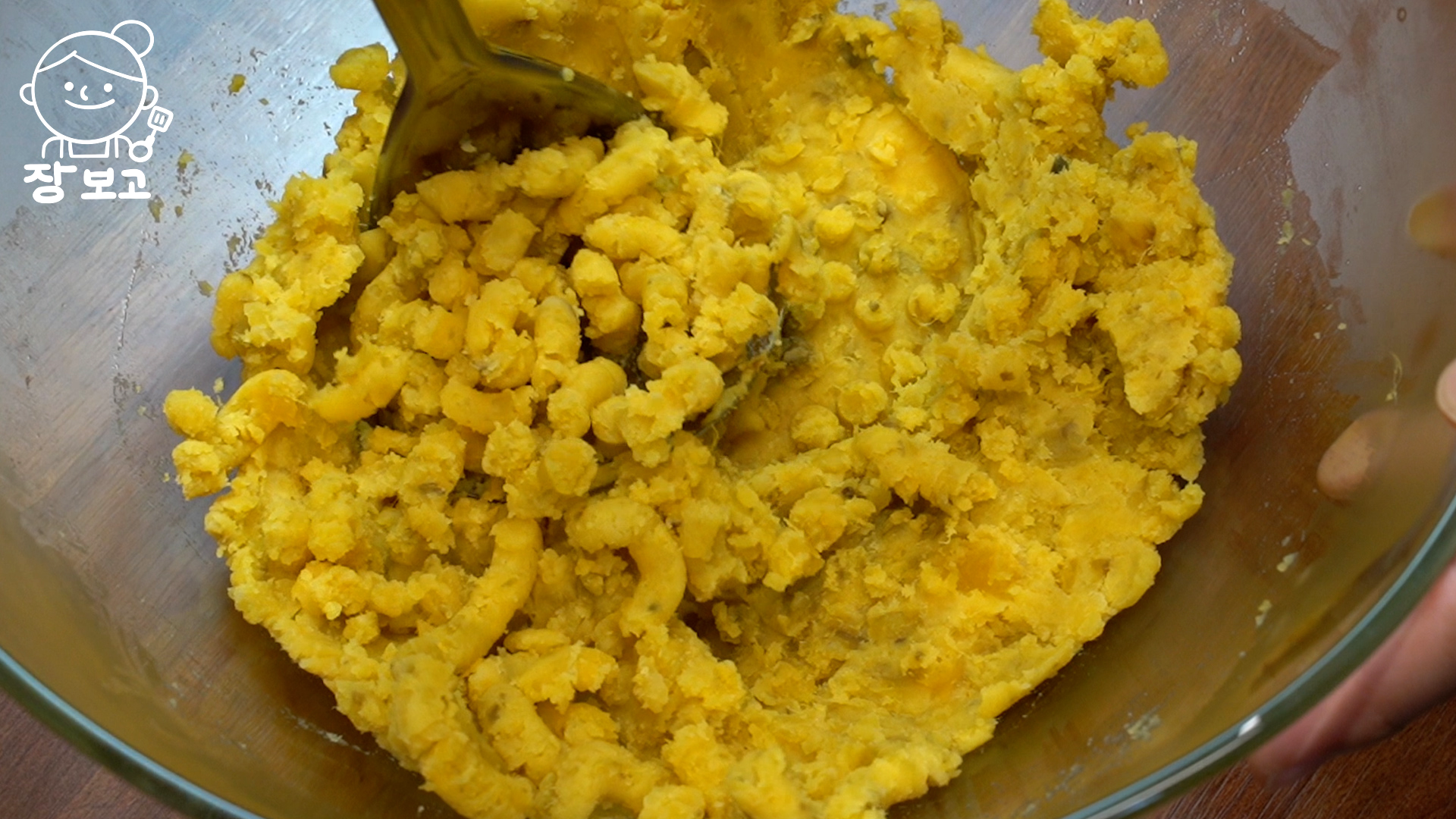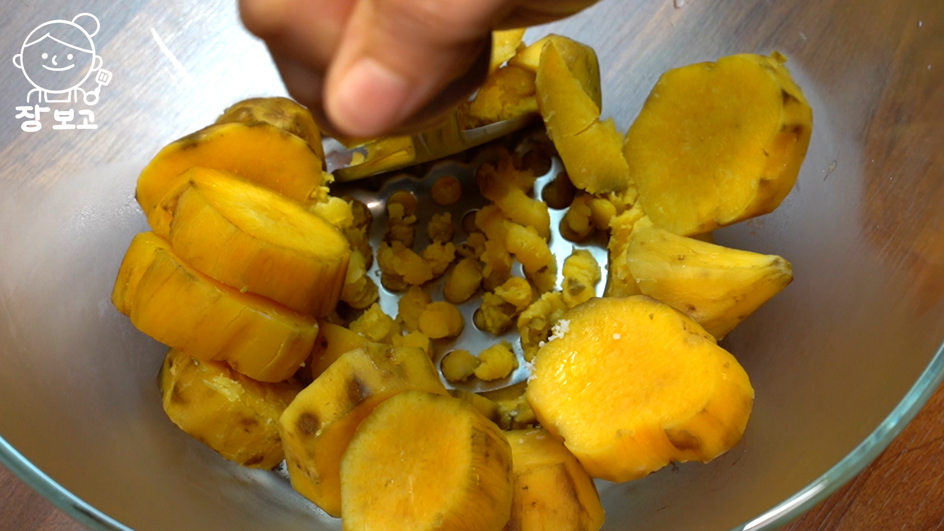 4. 고구마가 다 쪄지면 뜨거울 때 볼로 옮겨 매셔로 곱게 으깬다.