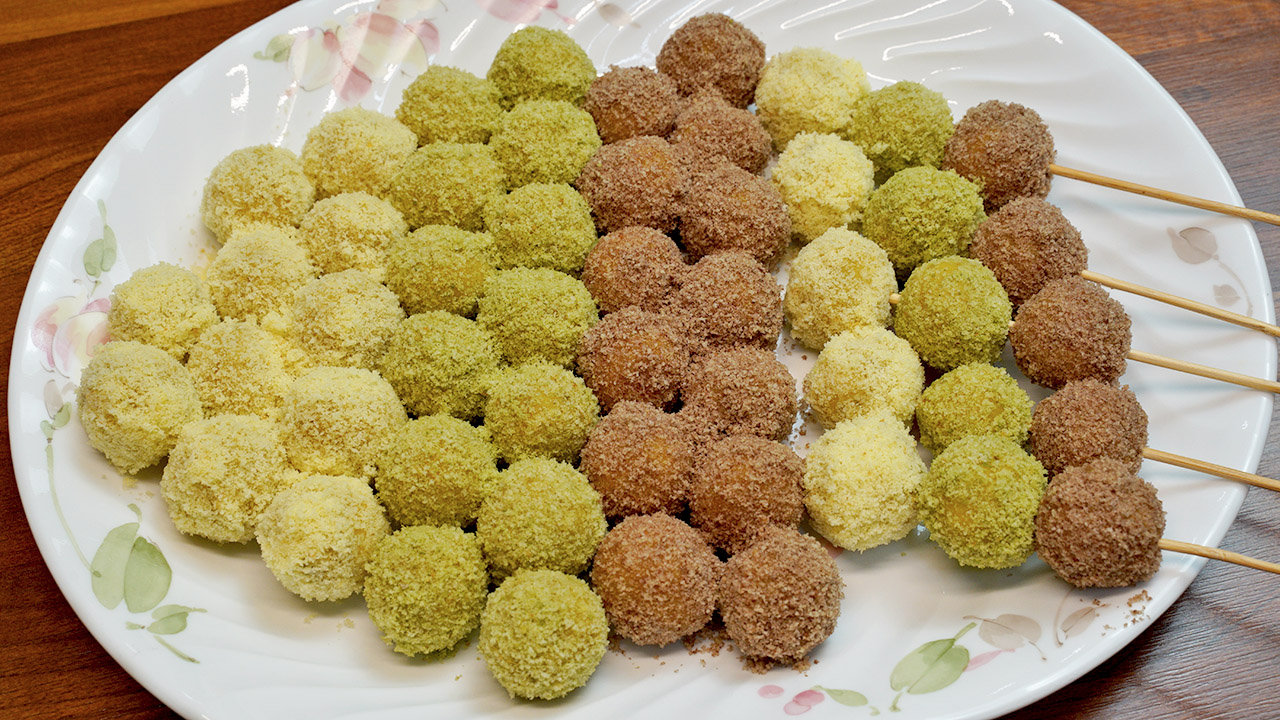 초간단 고구마 요리 삼색 고구마 경단 완성!