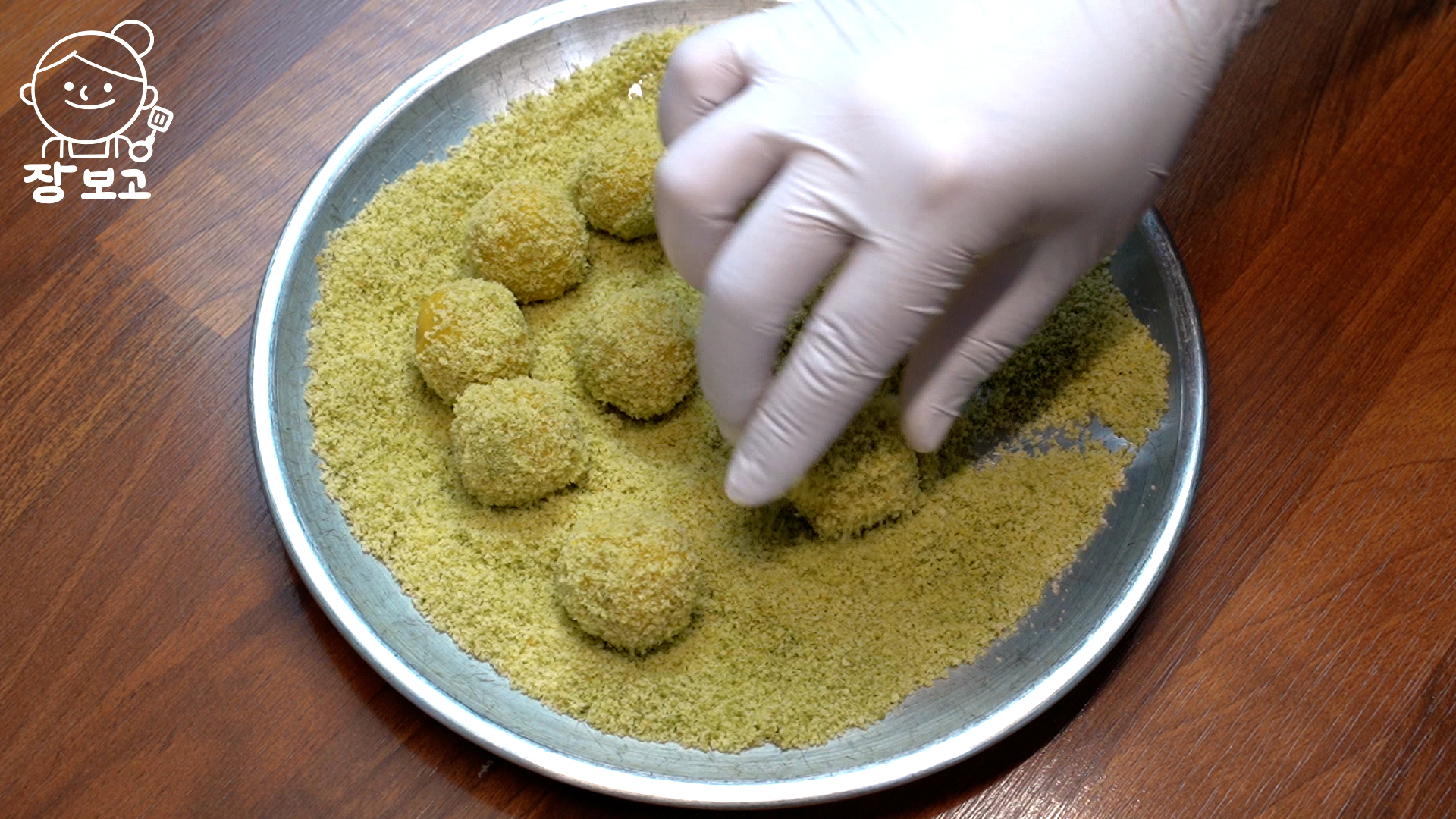 6. 카스테라 가루에 굴린다.
