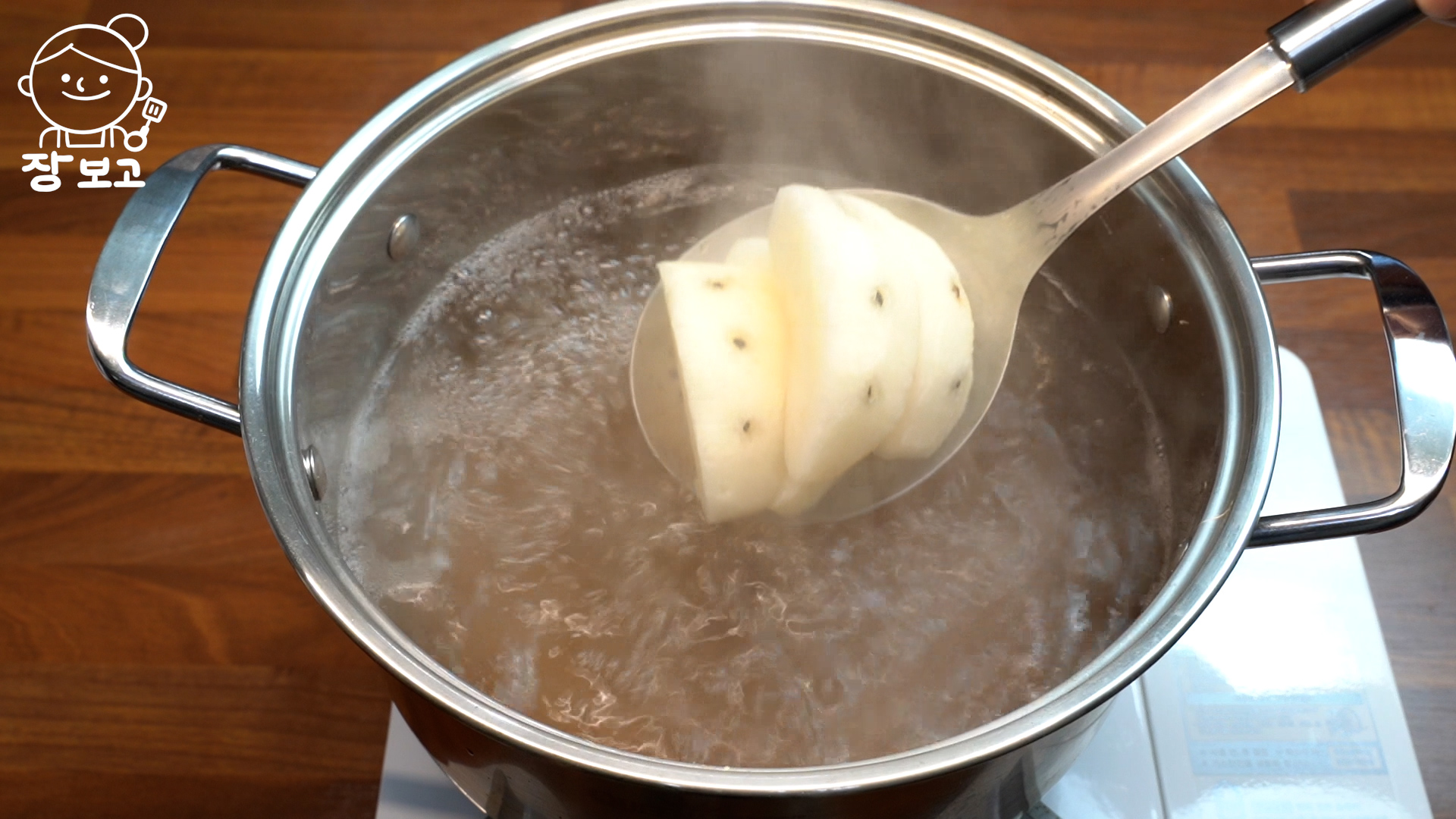 4. 끓는 생강물에 배를 넣고 10분간 끓이면 초간단 생강배숙 완성!