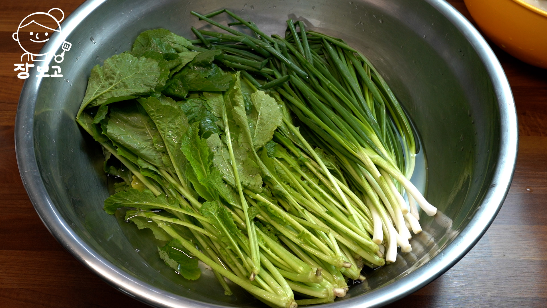 1. 하루가 지나 절여진 무를 잠시 빼고, 깨끗이 씻은 청갓 400g과 쪽파 200g을 무 절였던 물에 30분 절인다.