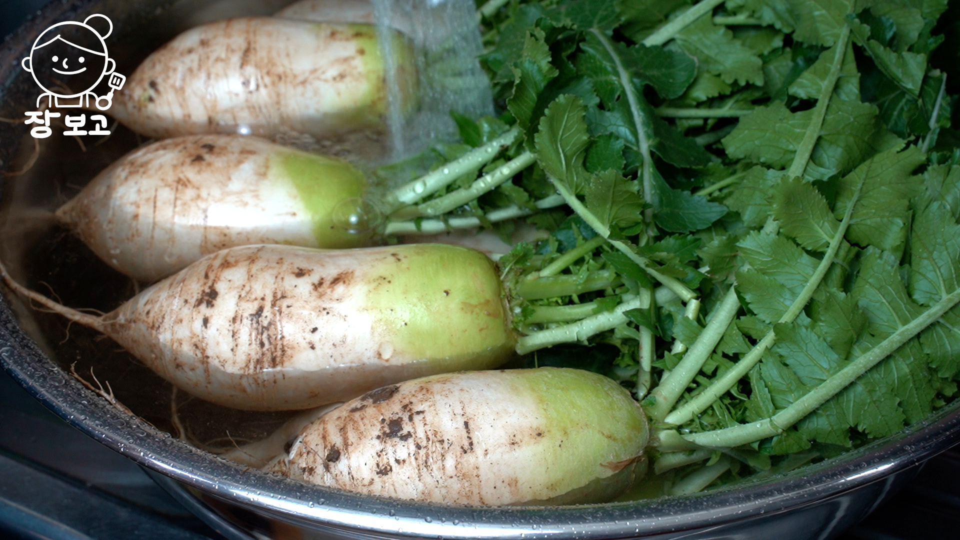 1. 무는 다라에 넣고 잠길 만큼 물을 부어 30분간 흙을 불린다.