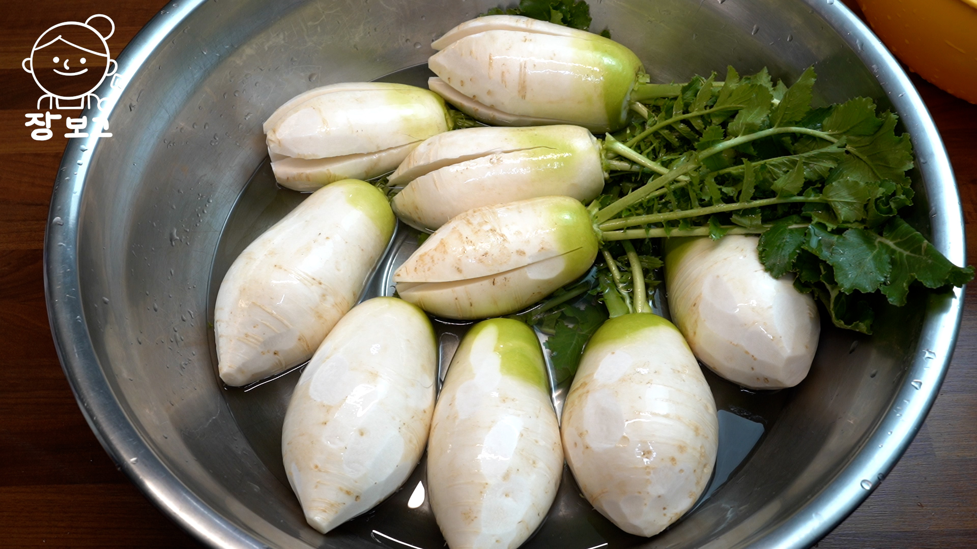 1. 무는 절반은 통으로, 절반은 열십자로 칼집 낸다. 칼집 낸 무는 익자마자 먼저 먹는 용, 통 무는 두고두고 먹는 용이다.