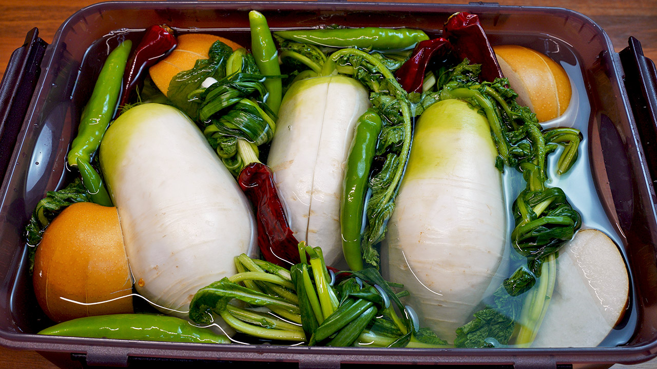4. 햇빛 들지 않는 상온에서 5일 숙성 후 냉장고로 옮겨 25일 전후로 먹으면 톡 쏘는 동치미 완성이다!