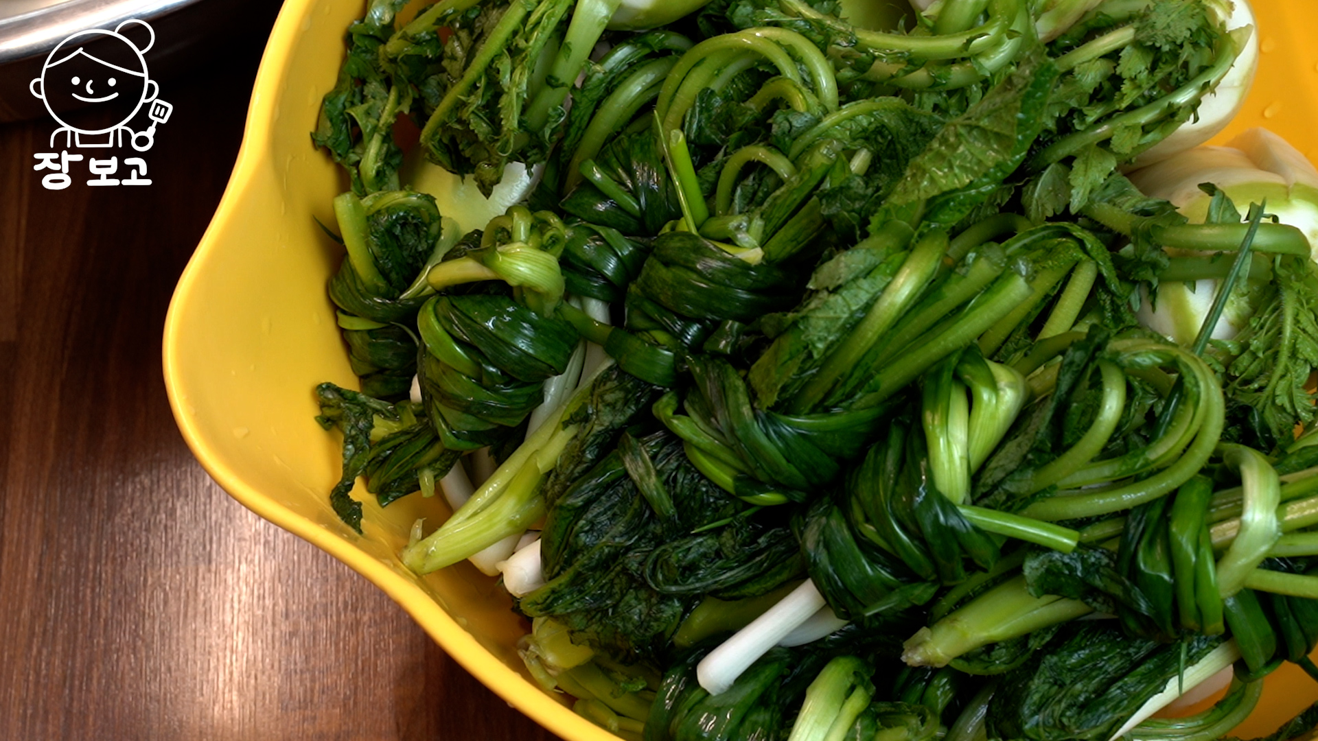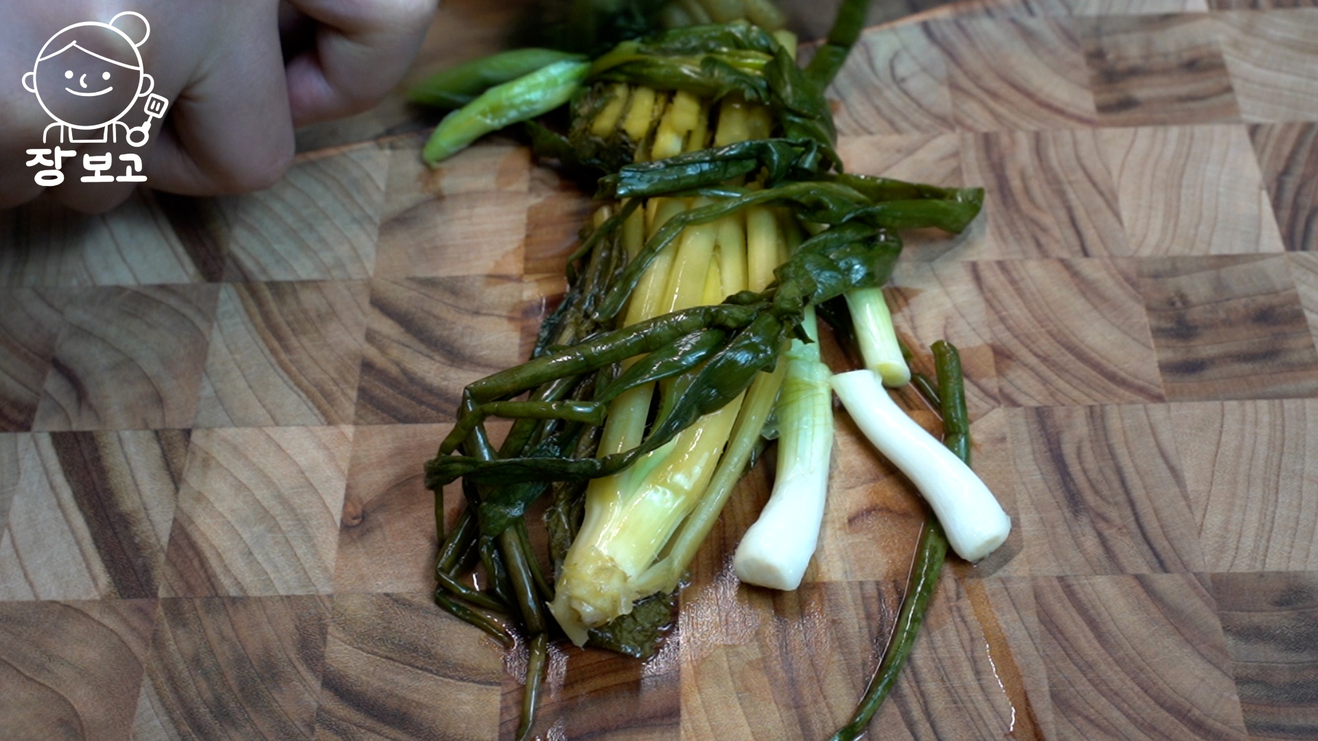 2. 30분 뒤 숨이 살짝 죽으면 청갓 한 줌에 쪽파를 돌돌 감는다. 이렇게 하면 한번 먹을 양만큼 소분이 되고, 보기에도 깔끔하다.