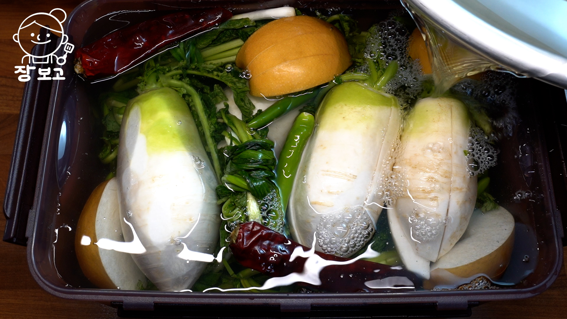발효가 되면서 새콤한 냄새가 풍기고, 동치미 국물이 뽀얘지며 공기방울처럼 거품이 뽀글뽀글 올라온다.