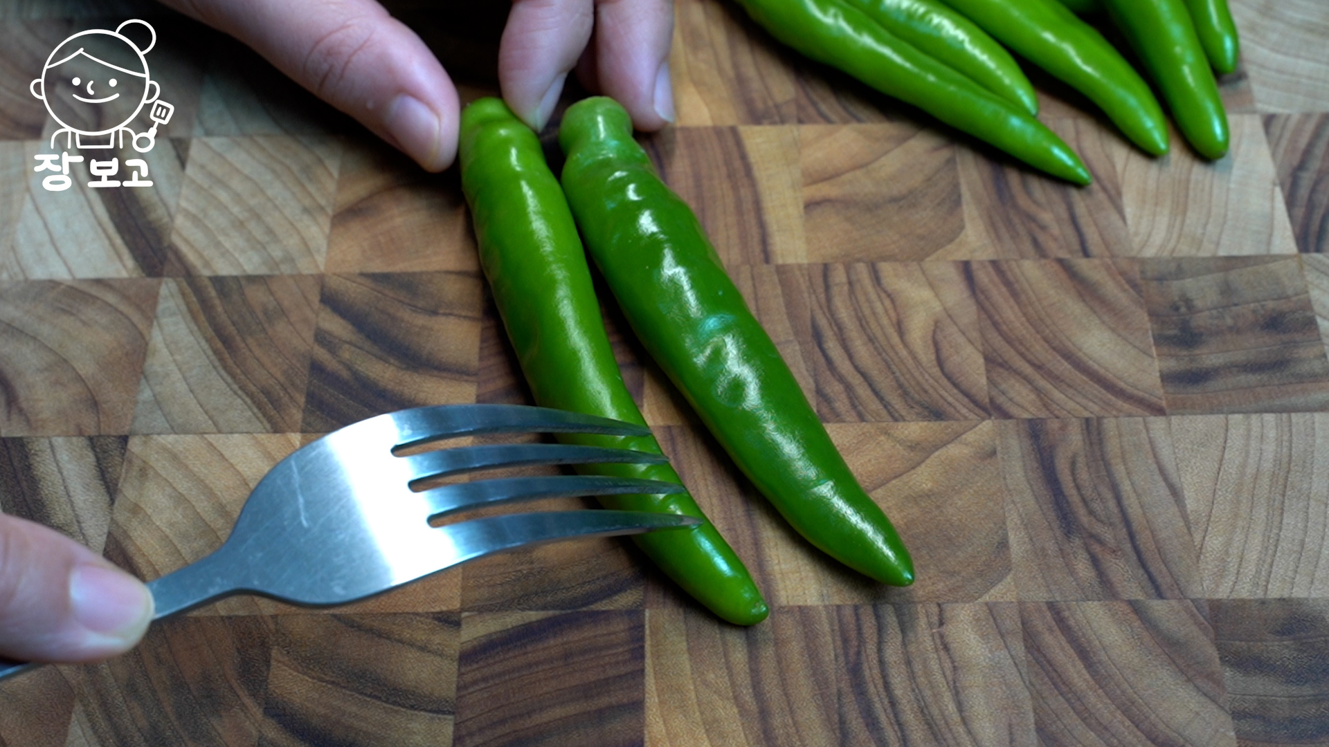5. 청양고추는 꼭지만 뗀다. 매큼한 맛을 원한다면 포크로 찌르면 되는데 깔끔한 맛을 원하니 찌르지 않았다.