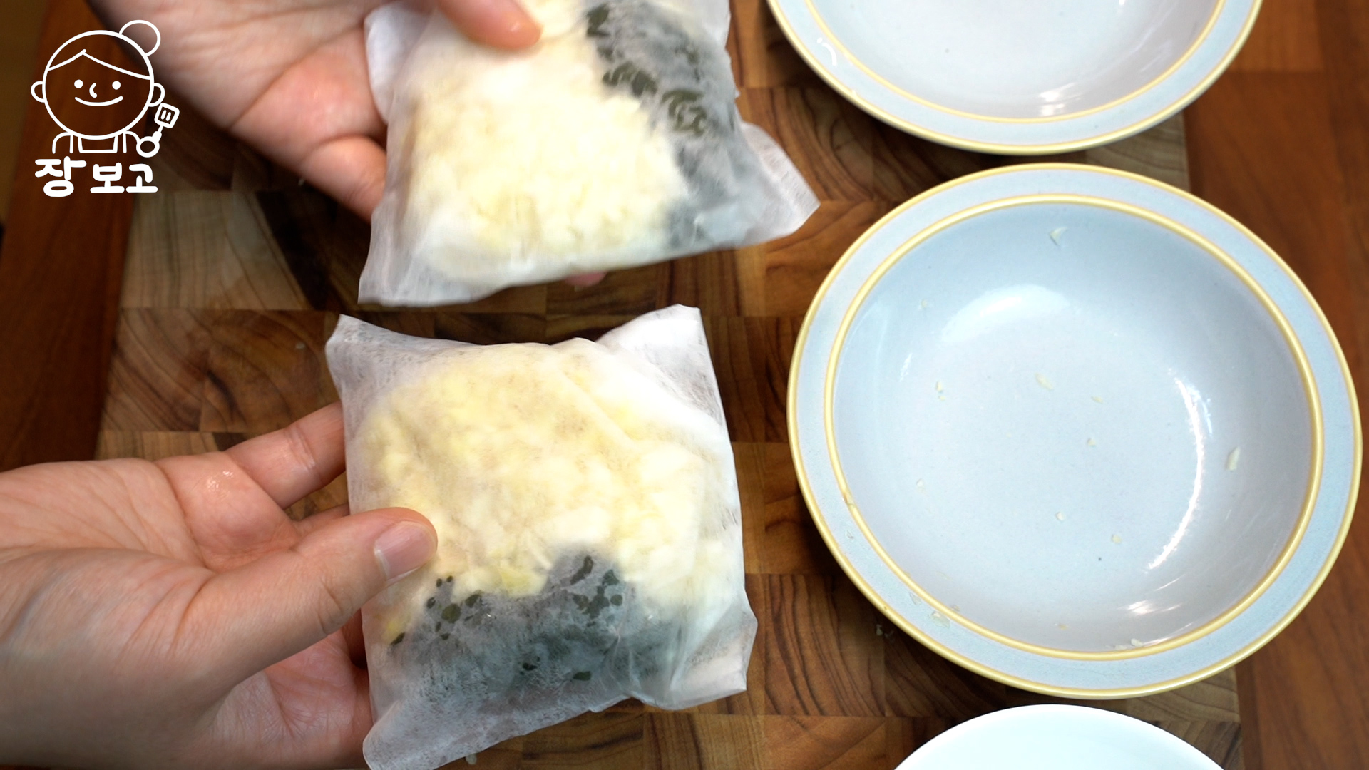 4. 청각과 다진 마늘과 생강은 다시 백 2개에 나눠 담는다.